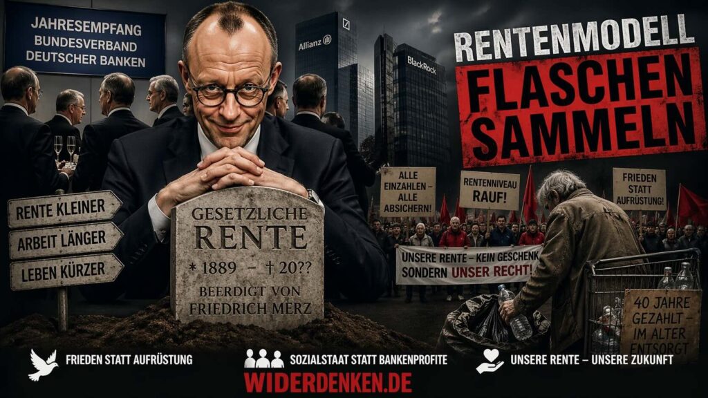 Am Ende ist es so einfach wie das: Ein Kanzler, der die Rente vor Bankiers beerdigt, der aus dem BlackRock-Aufsichtsrat direkt ins Kanzleramt wechselte, der Rüstung finanziert und Sozialabbau plant – dieser Kanzler vertritt nicht die Mehrheit dieses Landes. Er vertritt eine dünne Schicht von Vermögenden, die nie auf die gesetzliche Rente angewiesen sein werden.